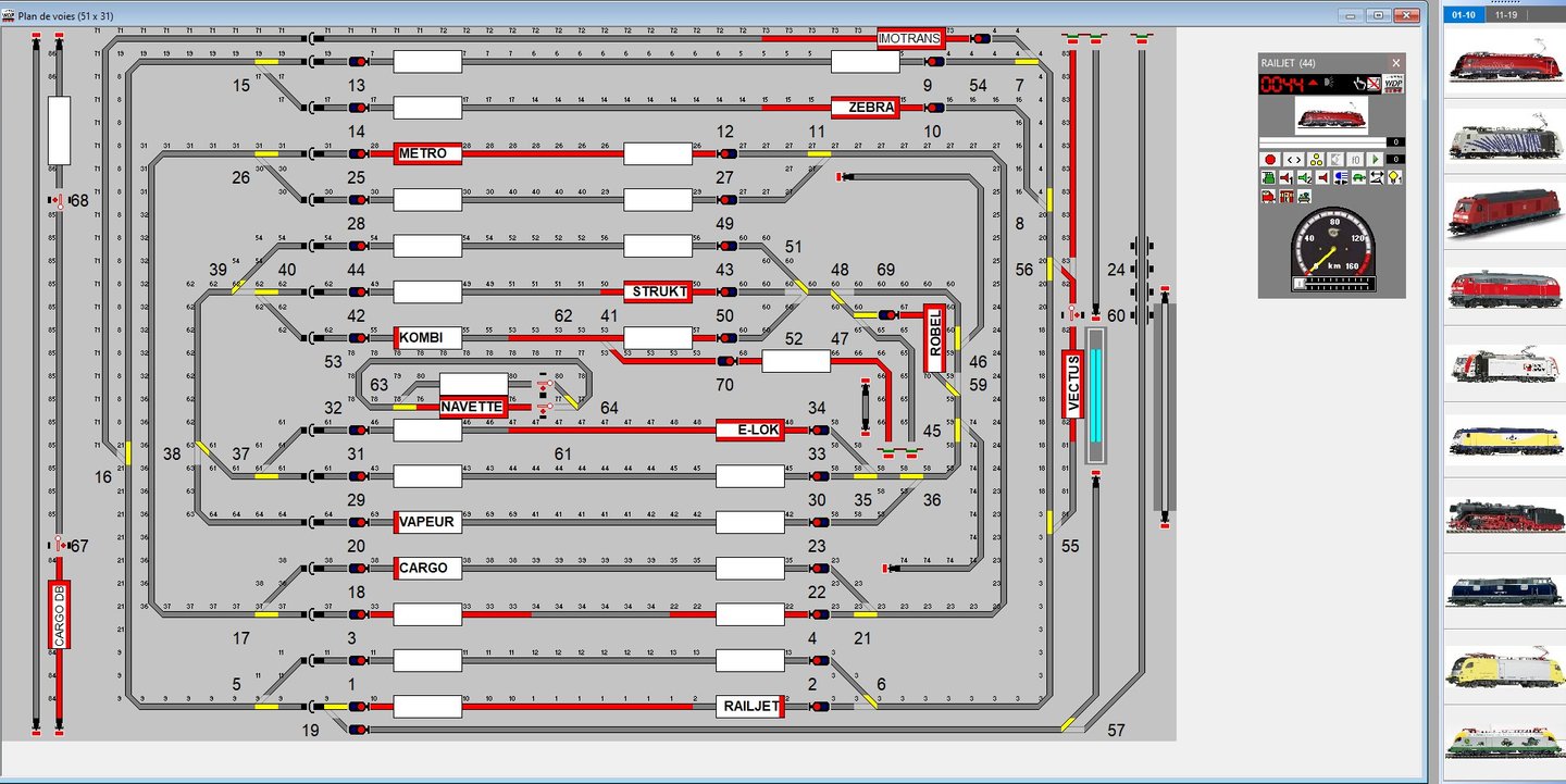 Gestion des itinéraires : Il est possible de créer et de gérer des itinéraires personnalisés pour les trains, en planifiant les trajets, les arrêts et les interactions avec d'autres trains.